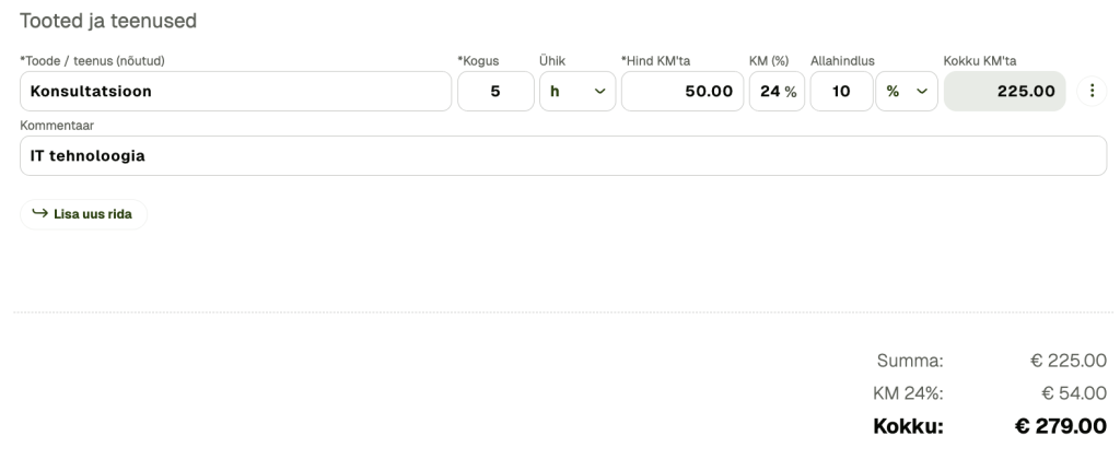 - Soodustused: Kui rakendad allahindlust, peab see olema arvel eraldi välja toodud.