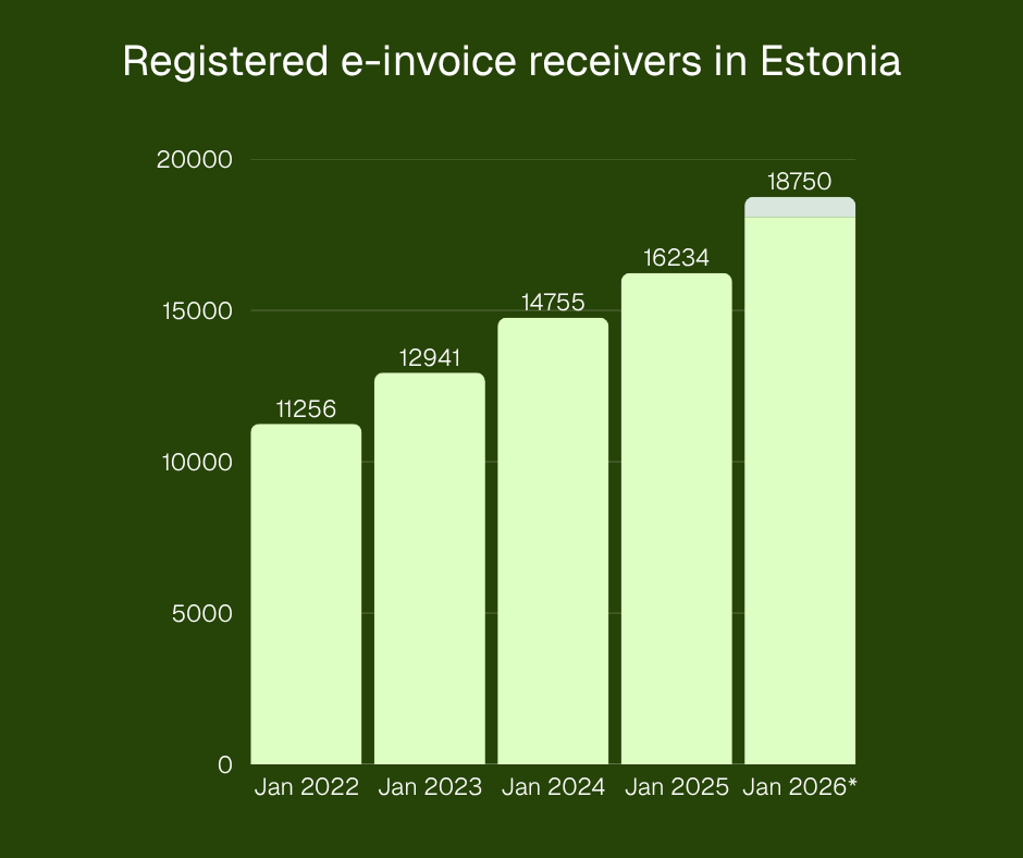 Vaikka sähköisiä laskuja on ollut saatavilla Virossa jo vuosia, täydellistä digitaalista vallankumousta yritysten välisessä laskutuksessa ei ole vielä tapahtunut. Uusimpien tietojen mukaan yritysten välinen (B2B) sähköinen laskutus muodostaa noin 231 000 000 laskua vaihdettujen laskujen kokonaismäärästä. Kuitenkin vain noin 111 000 000 taloudellisesti aktiivista yritystä hyväksyy sähköisiä laskuja.
